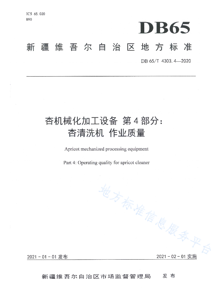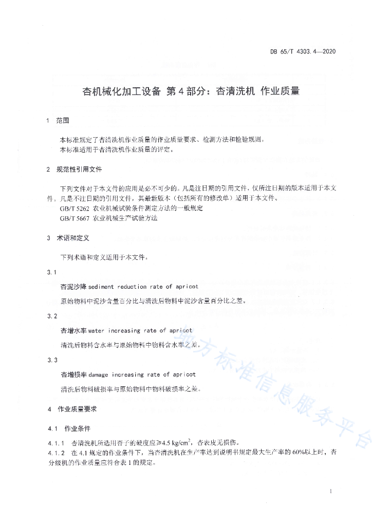 DB65/T 4303.4-2020 杏机械化加工设备第4部分:杏清洗机作业质量