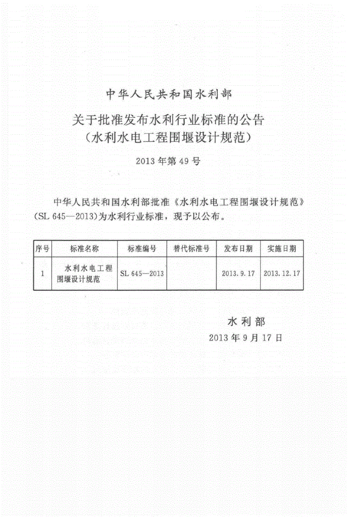 SL 645-2013 水利水电工程围堰设计规范(附条文说明)