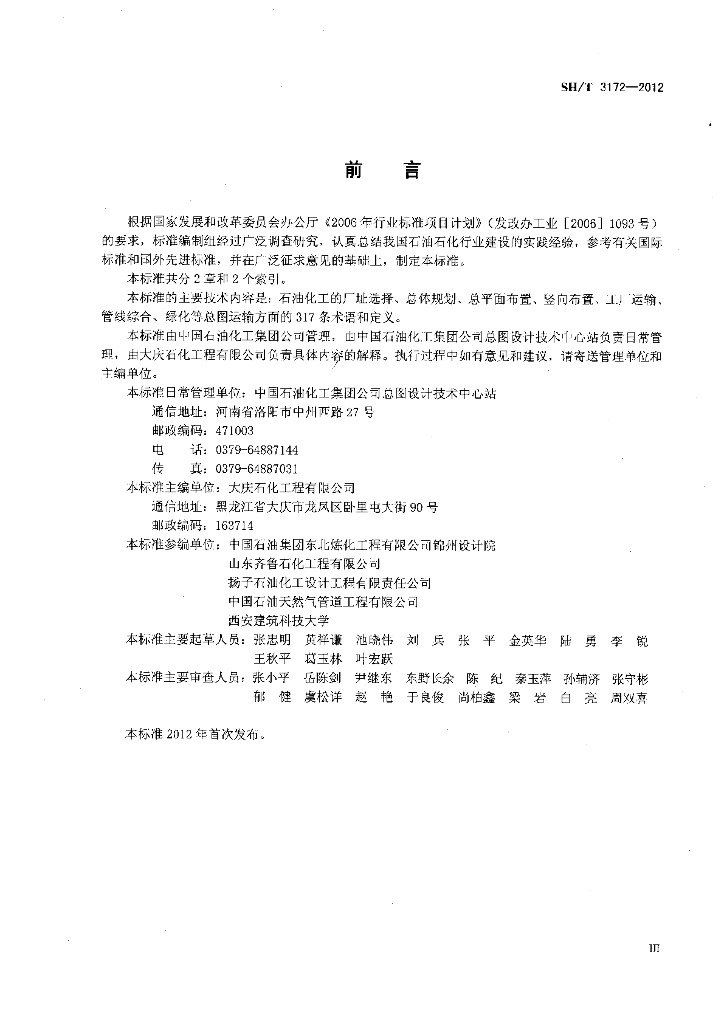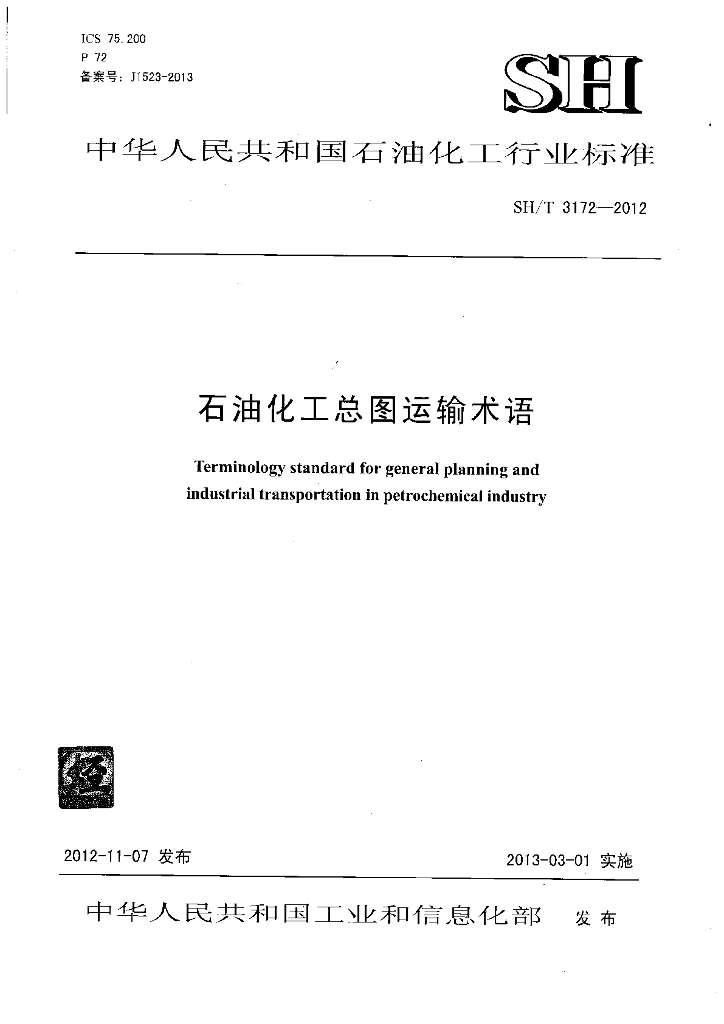 SH/T 3172-2012 石油化工总图运输术语