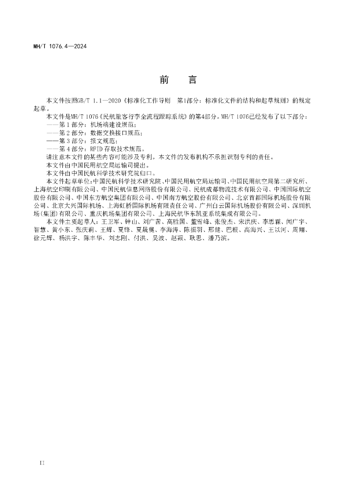 中国民航科学技术研究院、中国民用航空局运输司、中国民用航空局第二研究所、上海航空印刷有限公司、中国民航信息网络股份有限公司、民航成都物流技术有限公司、中国国际航空股份有限公司、中国东方航空集团有限公司、中国南方航空股份有限公司、北京首都国际机场股份有限公司、北京大兴国际机场、上海虹桥国际机场有限责任公司、广州白云国际机场股份有限公司、深圳机场(集团)有限公司、重庆机场集团有限公司、上海民航华东凯亚系统集成有限公司