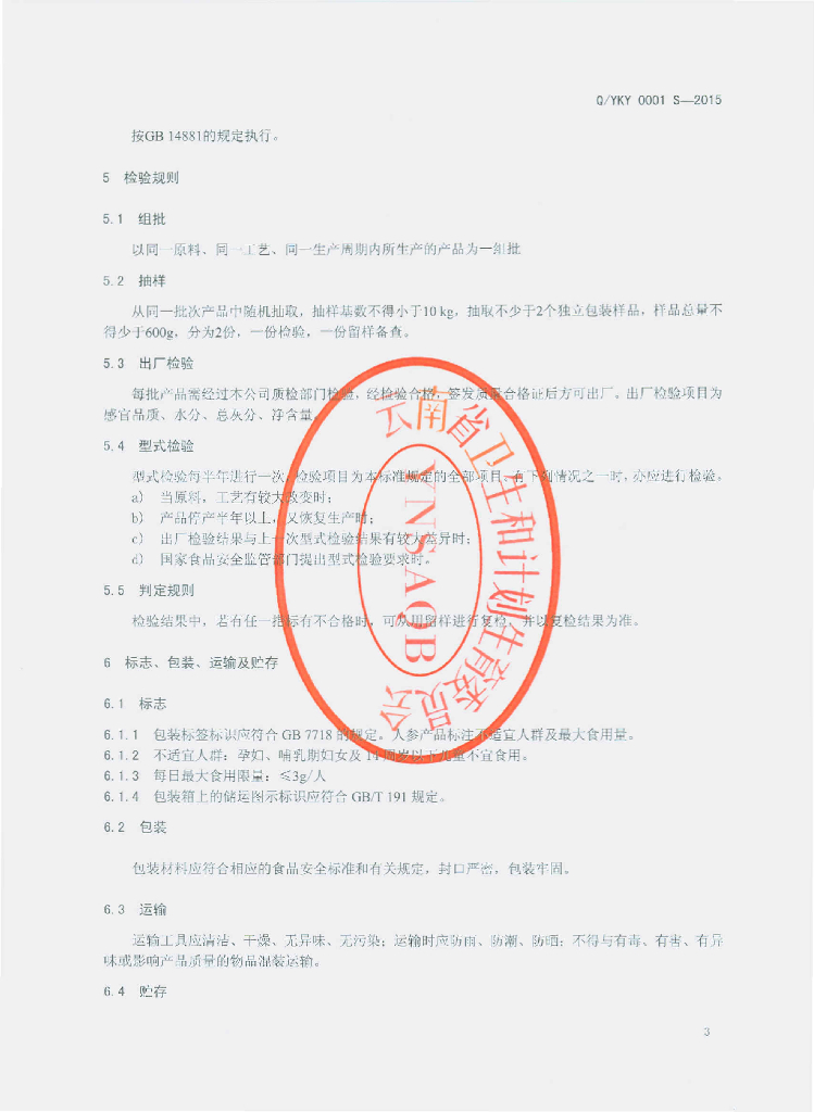 Q/YKY 0001S-2015 祥云县康益生物科技有限公司 代用茶