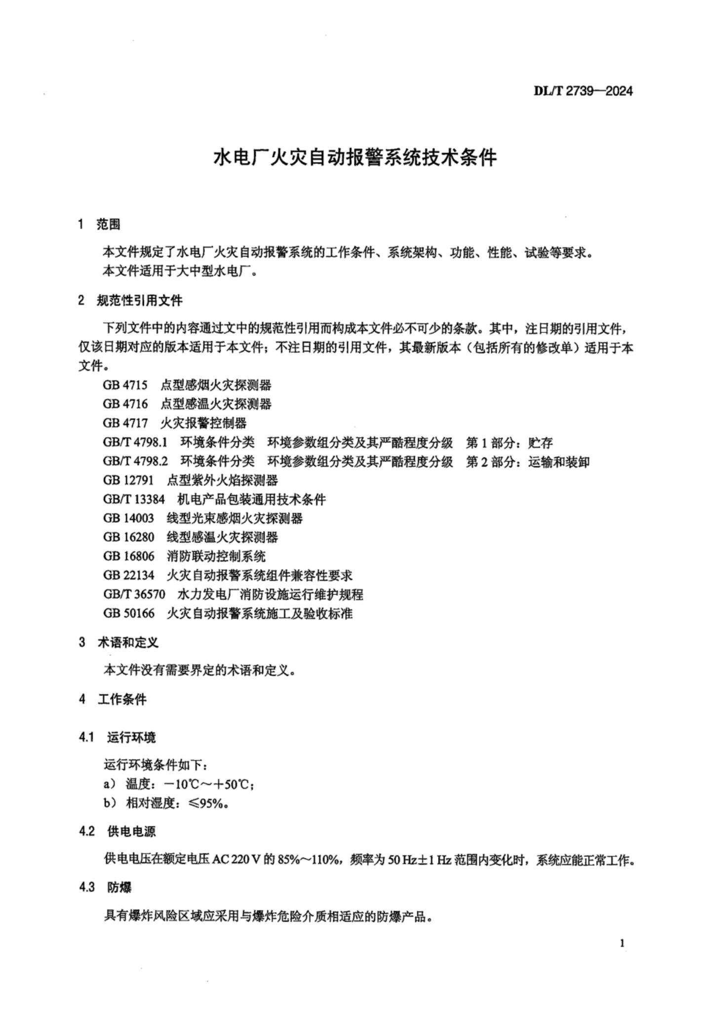 DL/T 2739-2024 水电厂火灾自动报警系统技术条件