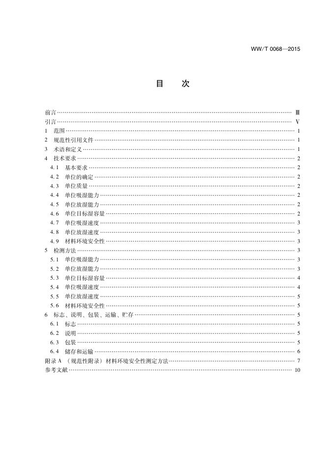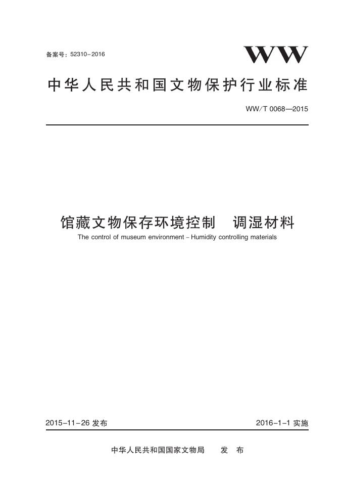 WW/T 0068-2015 馆藏文物保存环境控制 调湿材料