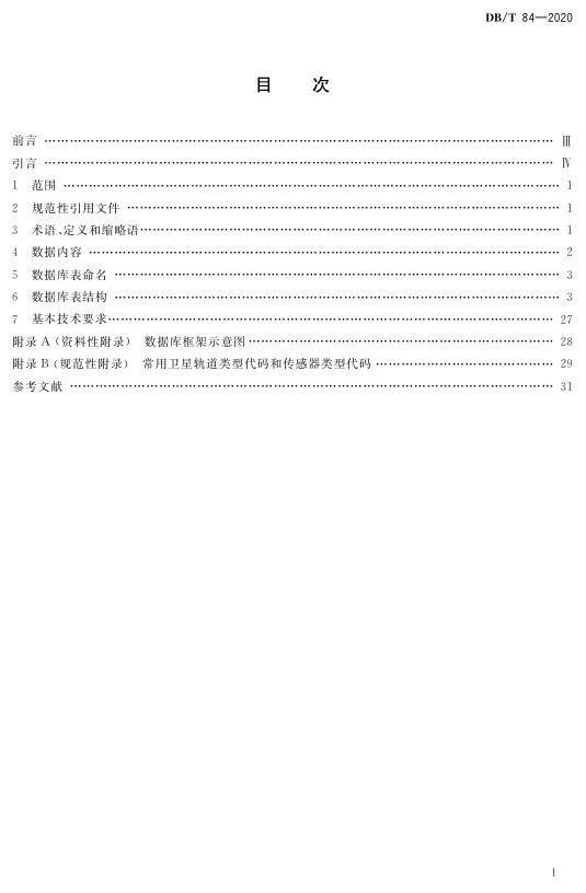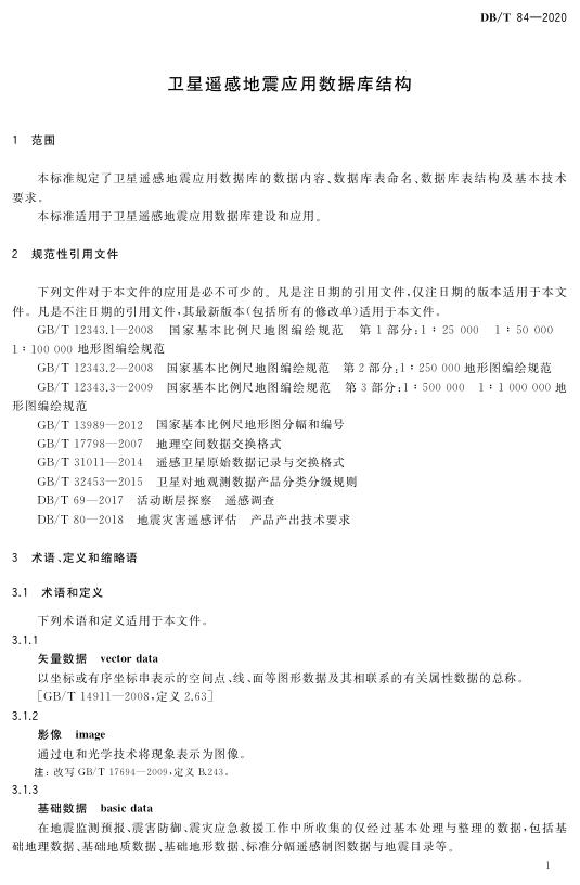 DB/T 84-2020 卫星遥感地震应用数据库结构