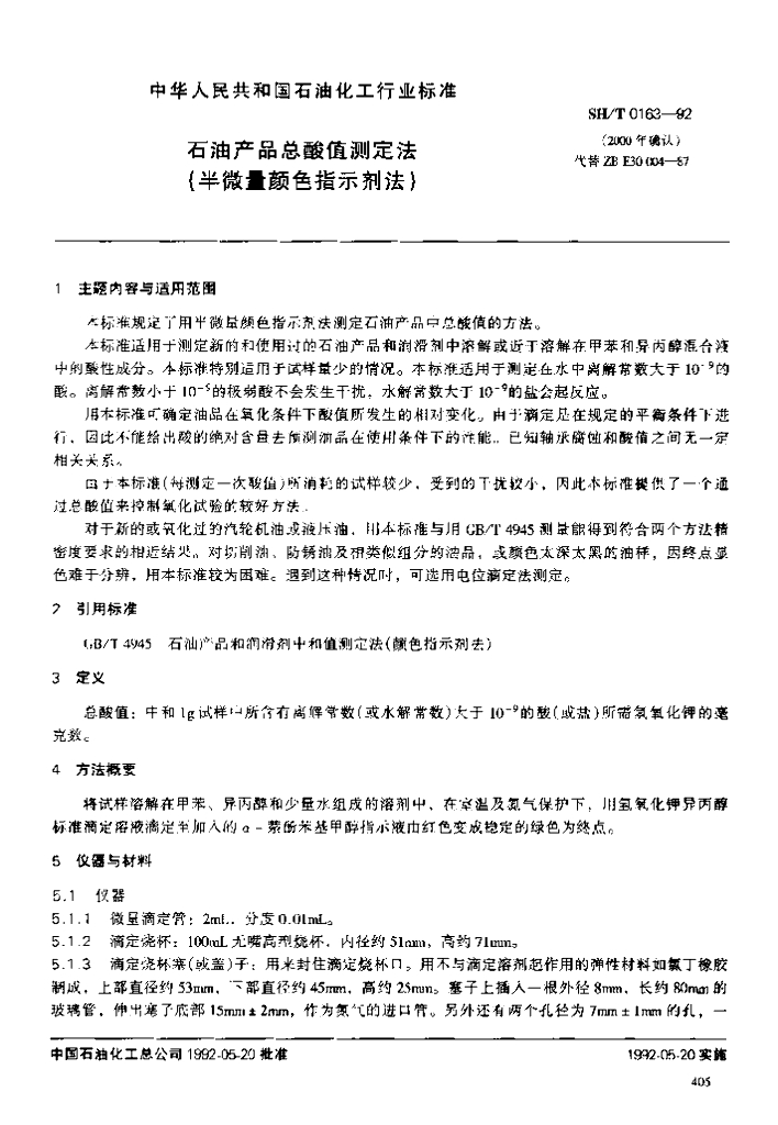 SH/T 0163-1992 石油产品总酸值测定法(半微量颜色指示剂法)