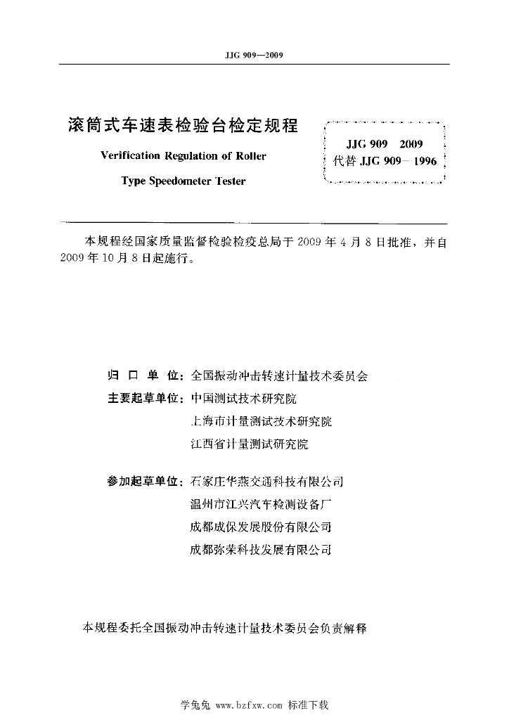 中国测试技术研究院、上海市计量测试技术研究院、江西省计量测试研究院、石家庄华燕交通科技有限公司、温州市江兴汽车检测设备厂、成都成保发展股份有限公司、成都弥荣科技发展有限公司
