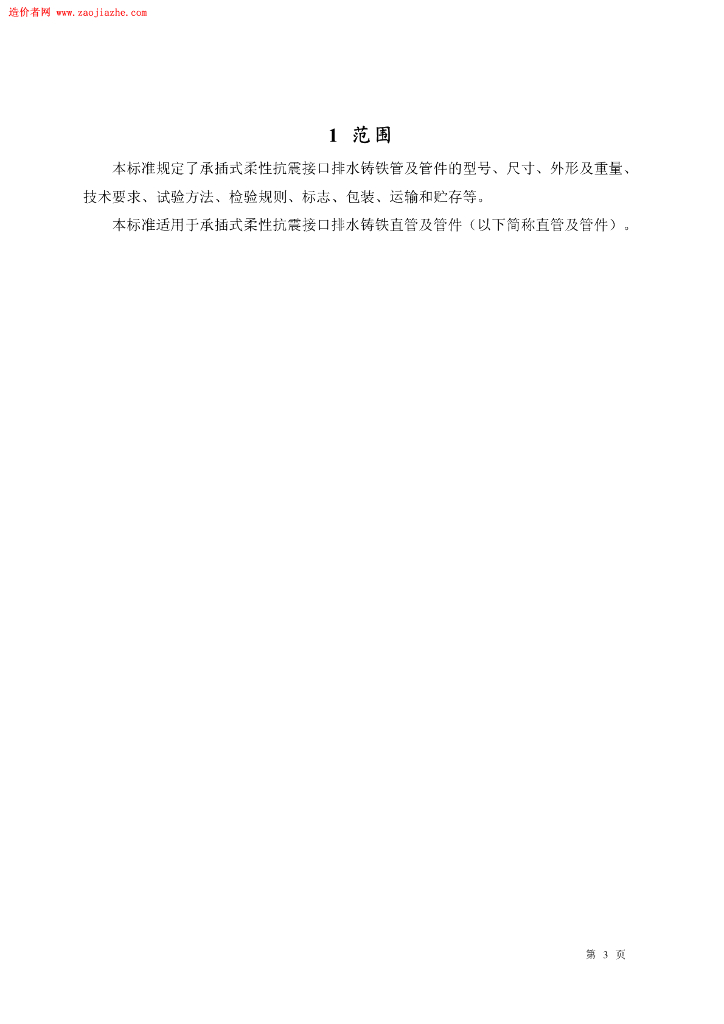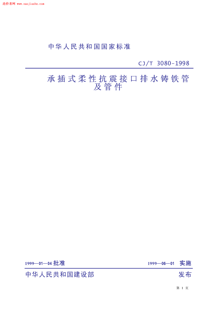 CJ/T 3080-1998 承插式柔性抗震接口排水铸铁管及管件规范