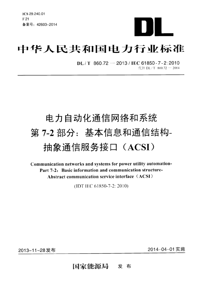 DL/T 860.72-2013 电力自动化通信网络和系统 第7-2部分:基本信息和通信结构-抽象通信服务接口( ACSI)