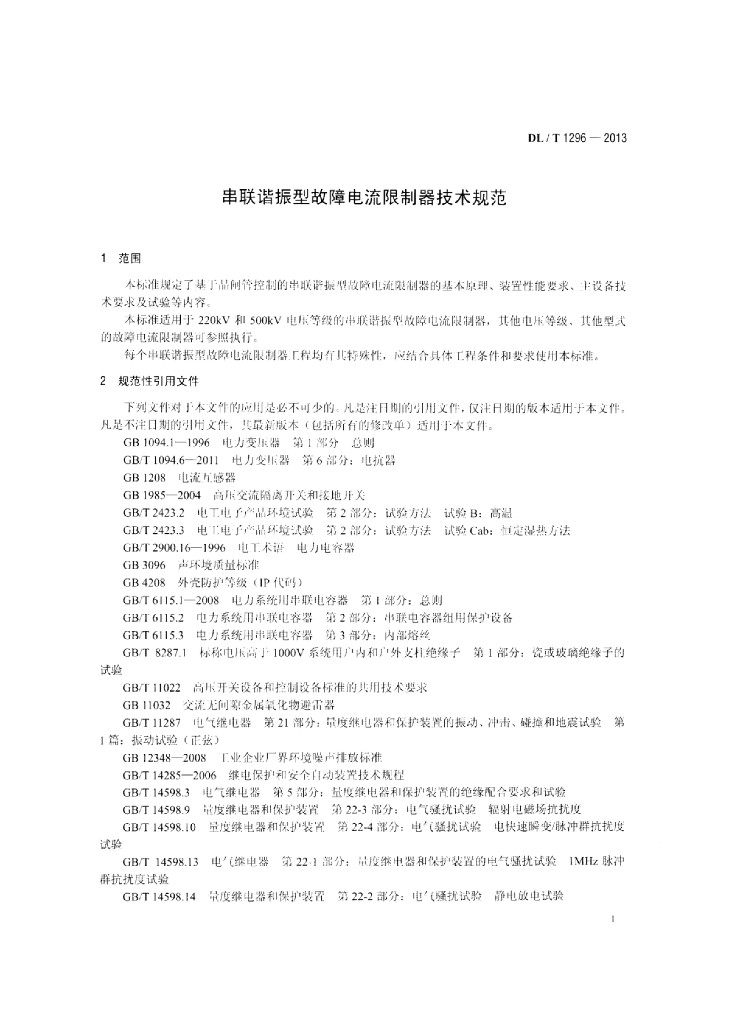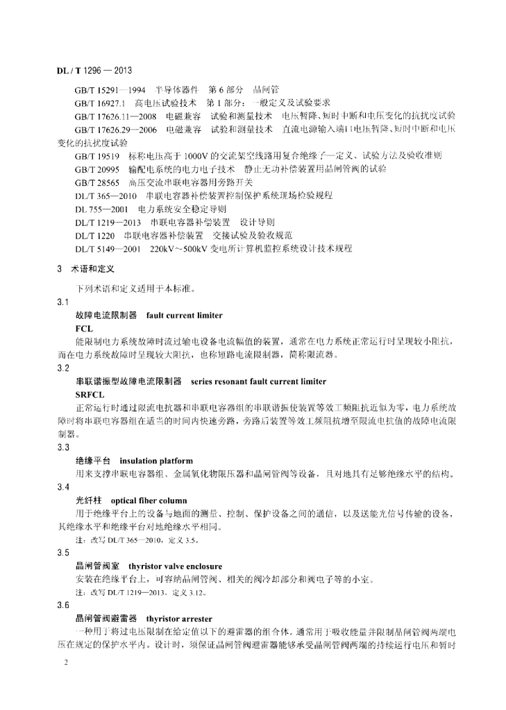 DL/T 1296-2013 串联谐振型故障电流限制器技术规范