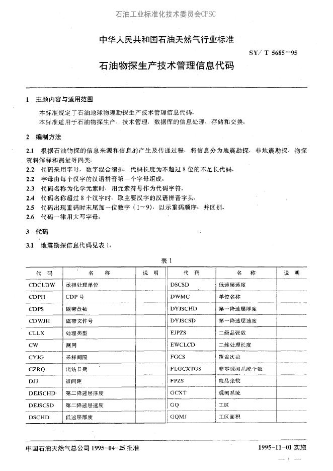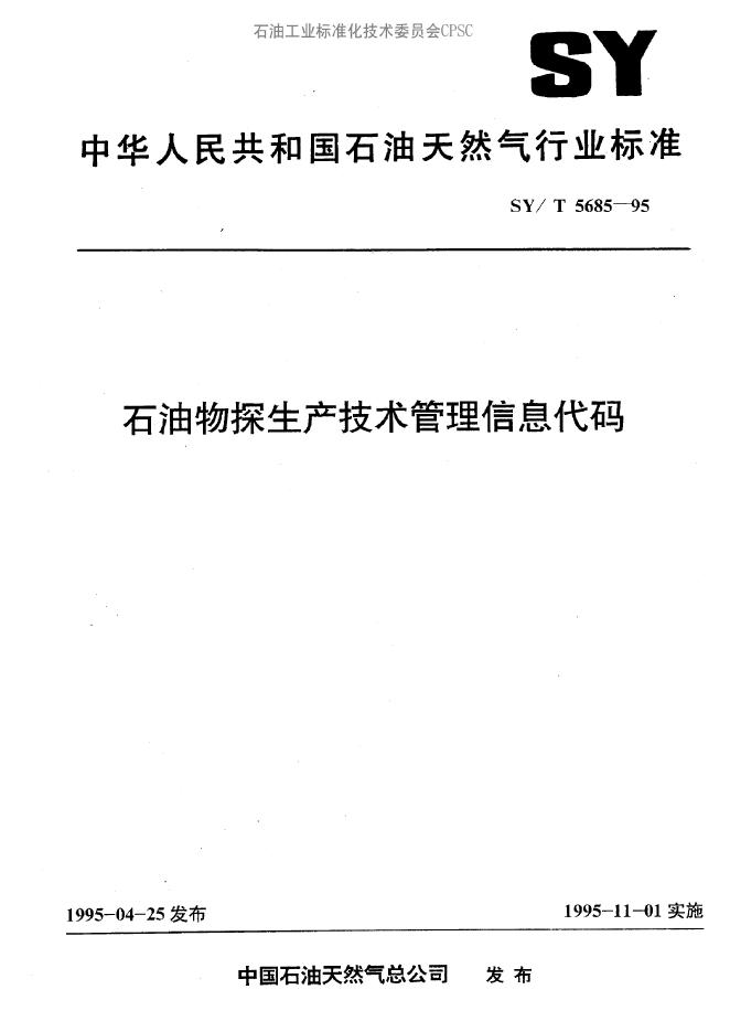 SY/T 5685-1995 石油物探生产技术管理信息代码