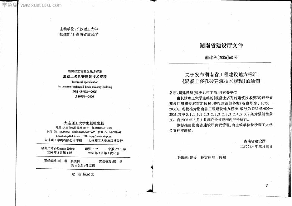 DBJ43/ 002-2005 混凝土多孔砖建筑技术规程