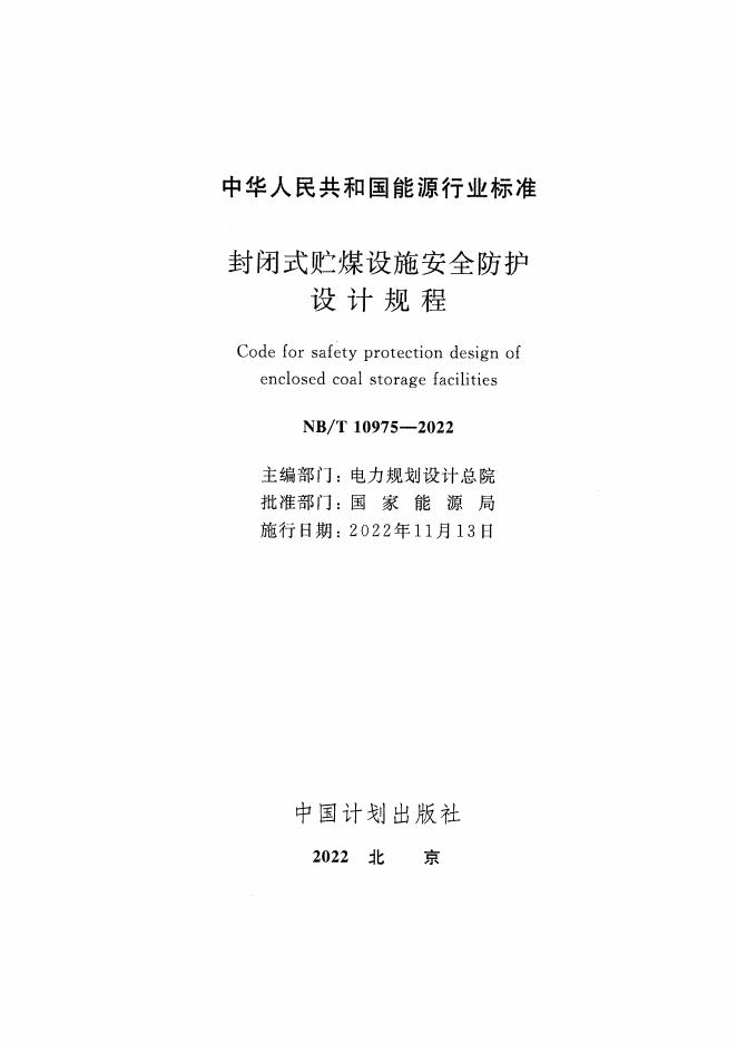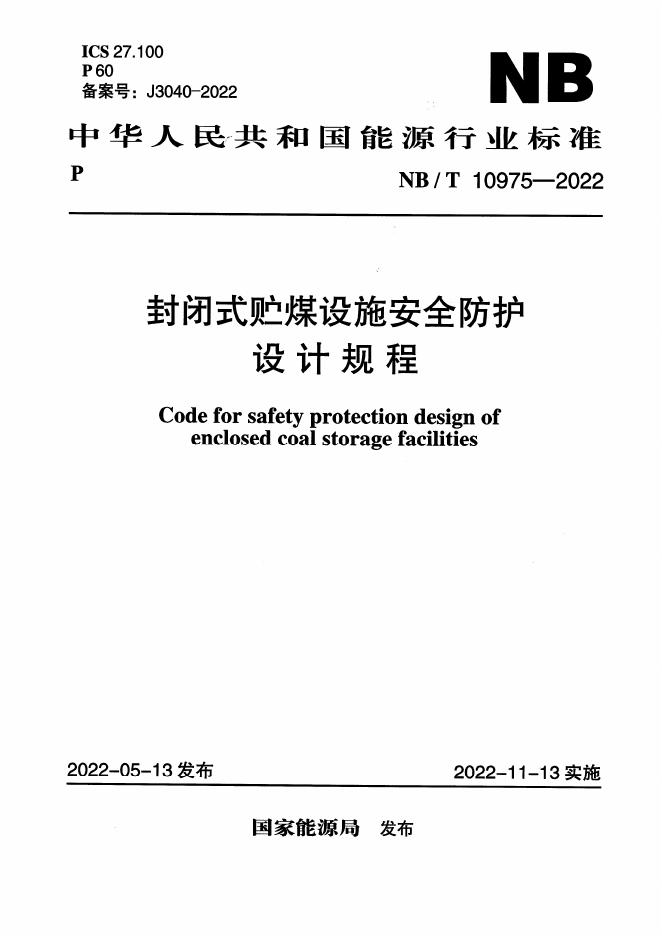 NB/T 10975-2022 封闭式贮煤设施安全防护设计规程(附条文说明)