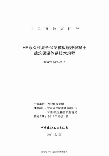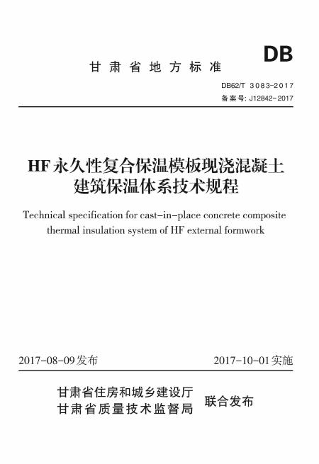 DB62/T 3083-2017 HF永久性复合保温模板现浇混凝土建筑保温体系技术规程