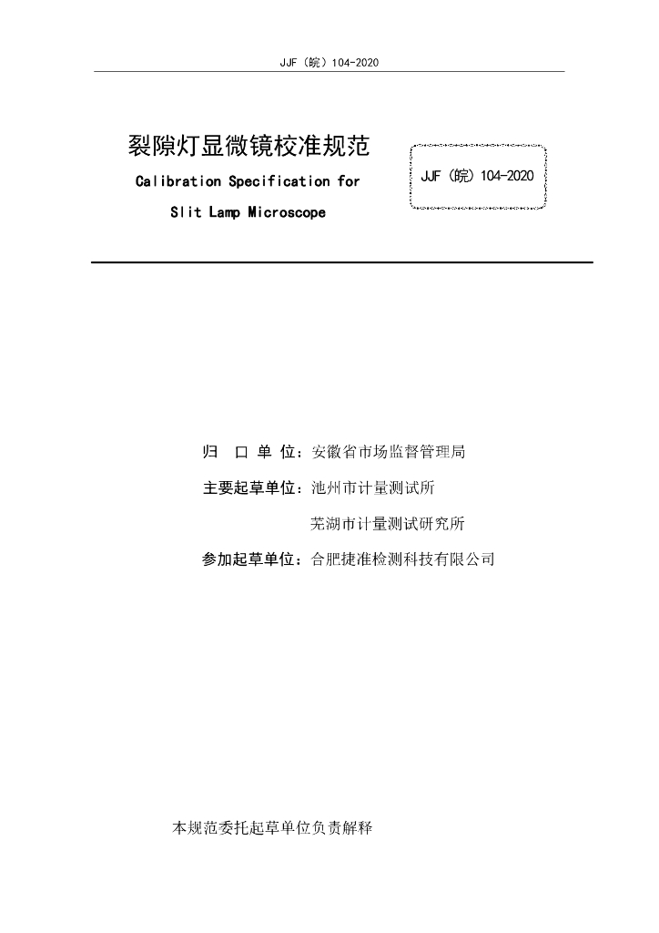 JJF(皖)104-2020 裂隙灯显微镜校准规范
