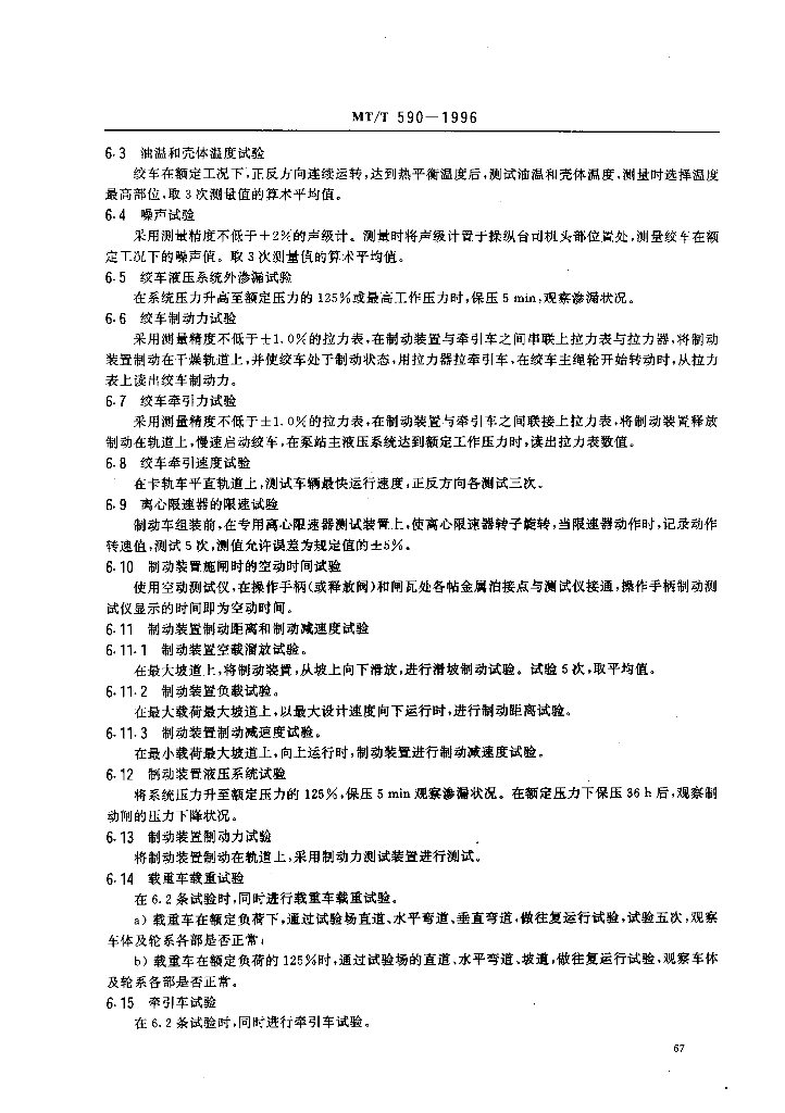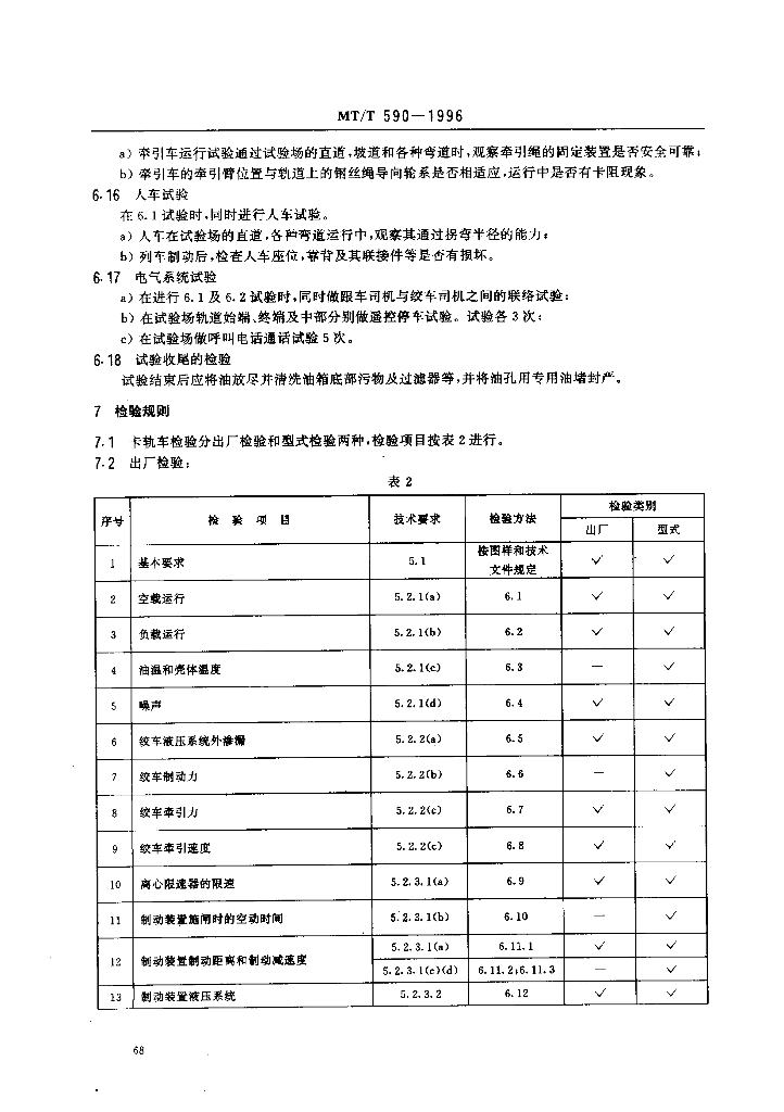 MT/T 590-1996 煤矿井下钢丝绳牵引卡轨车技术条件