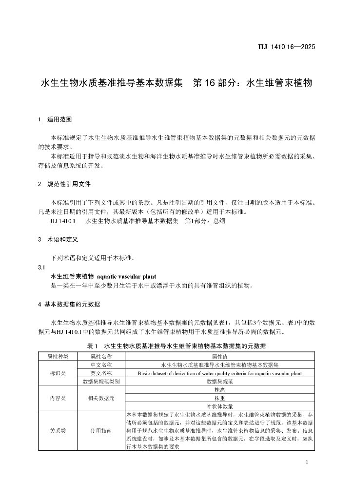 HJ 1410.16-2025 水生生物水质基准推导基本数据集 第16部分:水生维管束植物