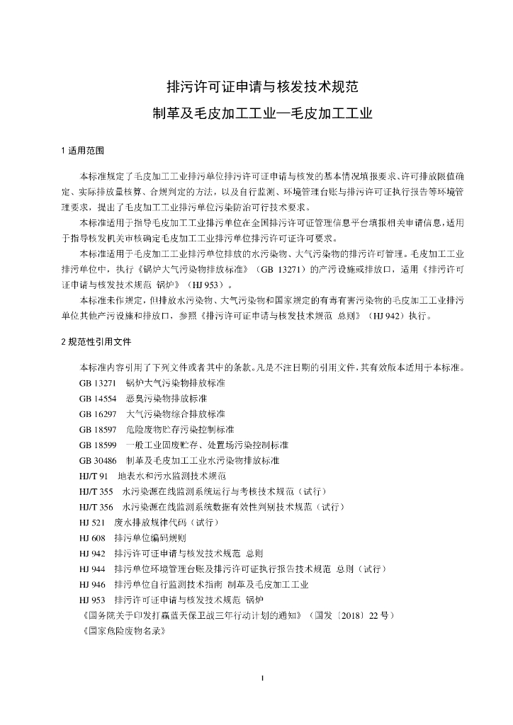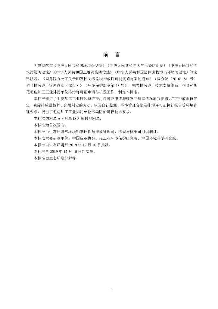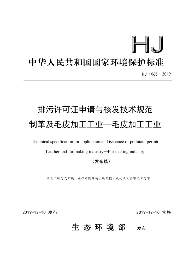 HJ 1065-2019 排污许可证申请与核发技术规范 制革及毛皮加工工业一毛皮加工工业