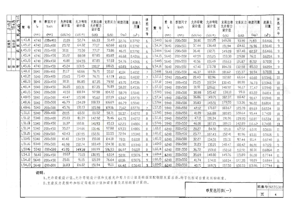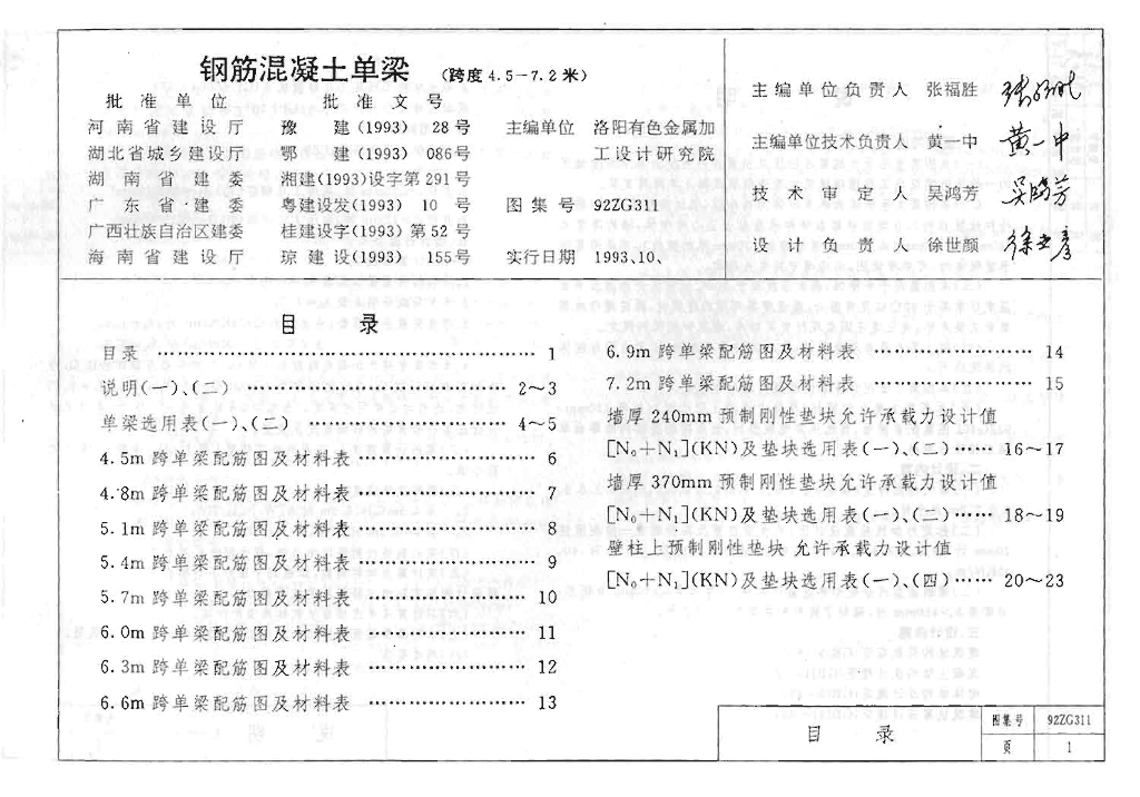 92ZG311 钢筋混凝土单梁(跨度4.5-7.2米)图集(中南标)