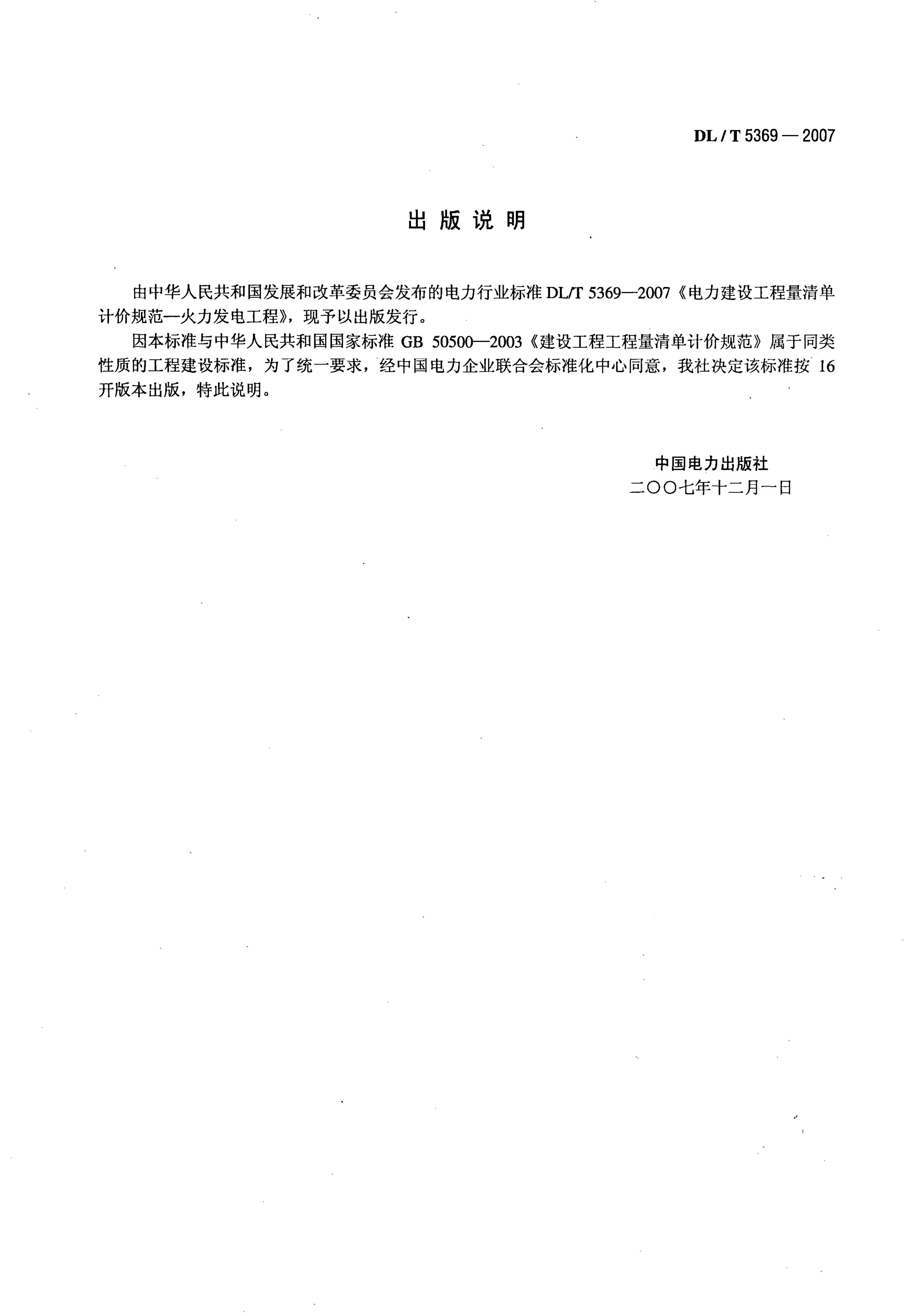 DL/T 5369-2007 电力建设工程量清单计价规范 火力发电厂工程