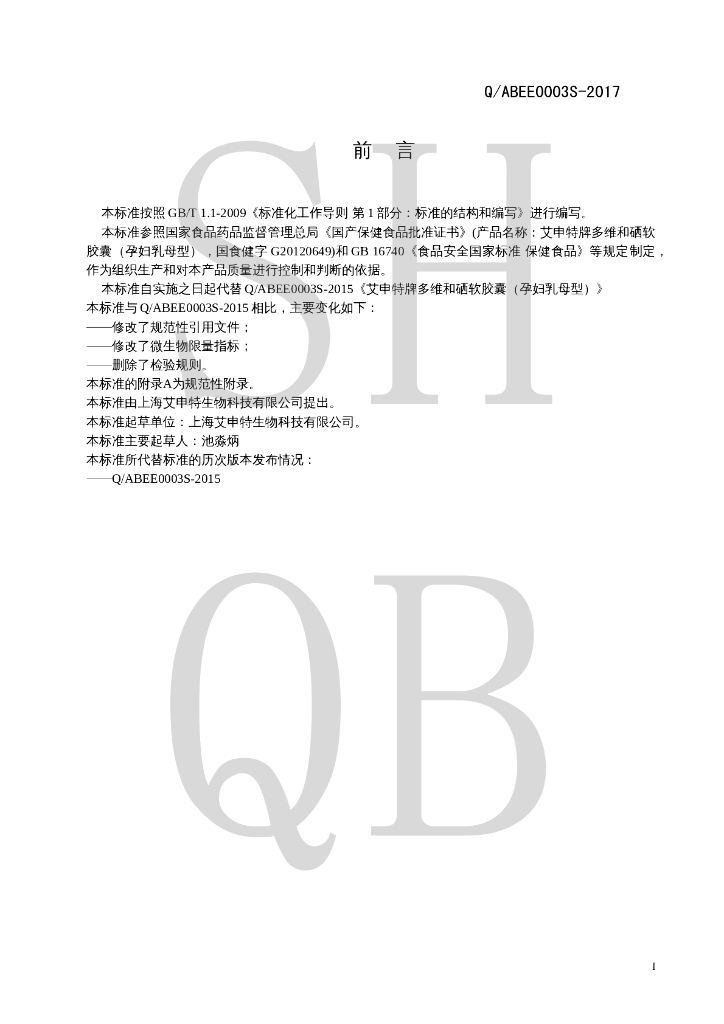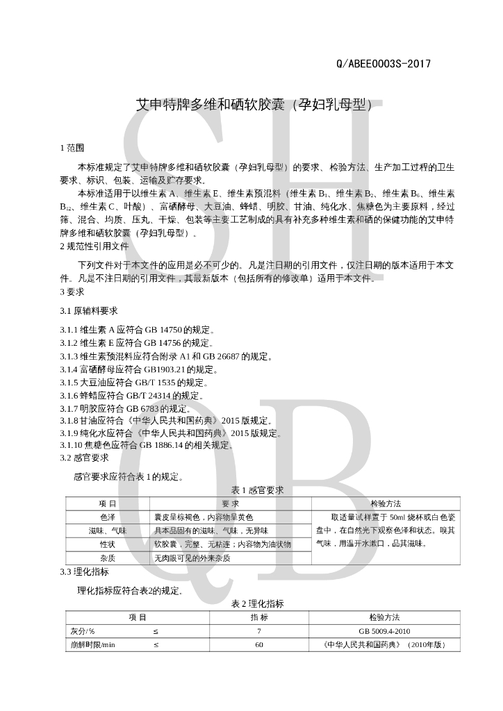 Q/ABEE 0003S-2017 艾申特牌多维和硒软胶囊(孕妇乳母型)