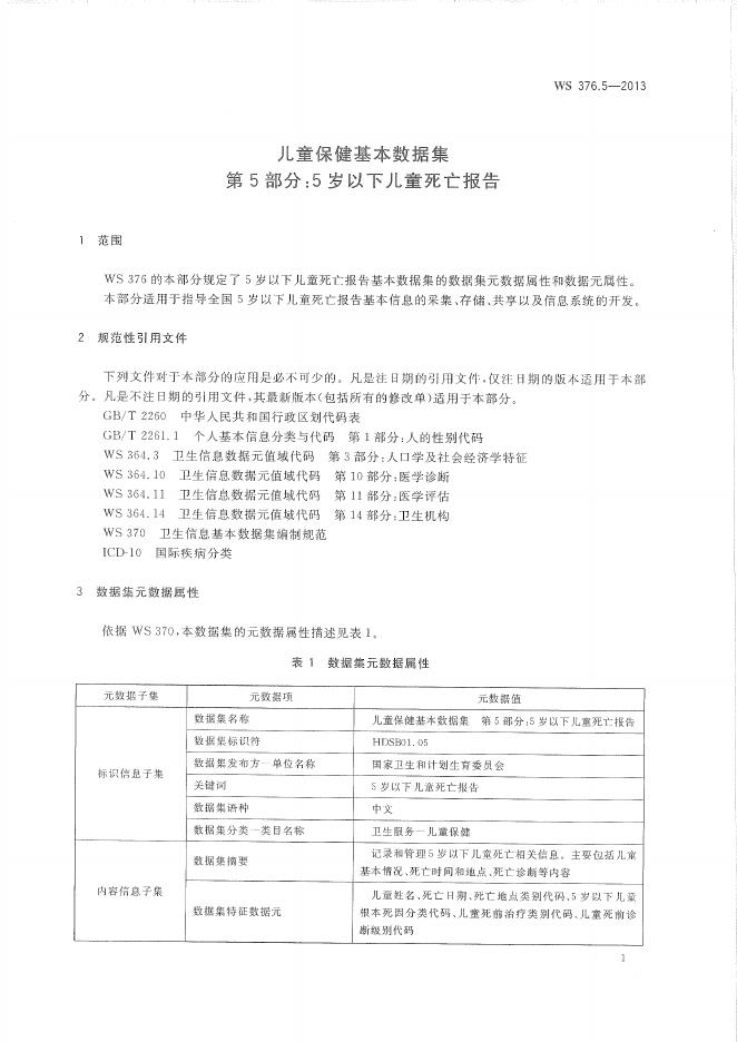 WS 376.5-2013 儿童保健基本数据集 第5部分:5岁以下儿童死亡报告