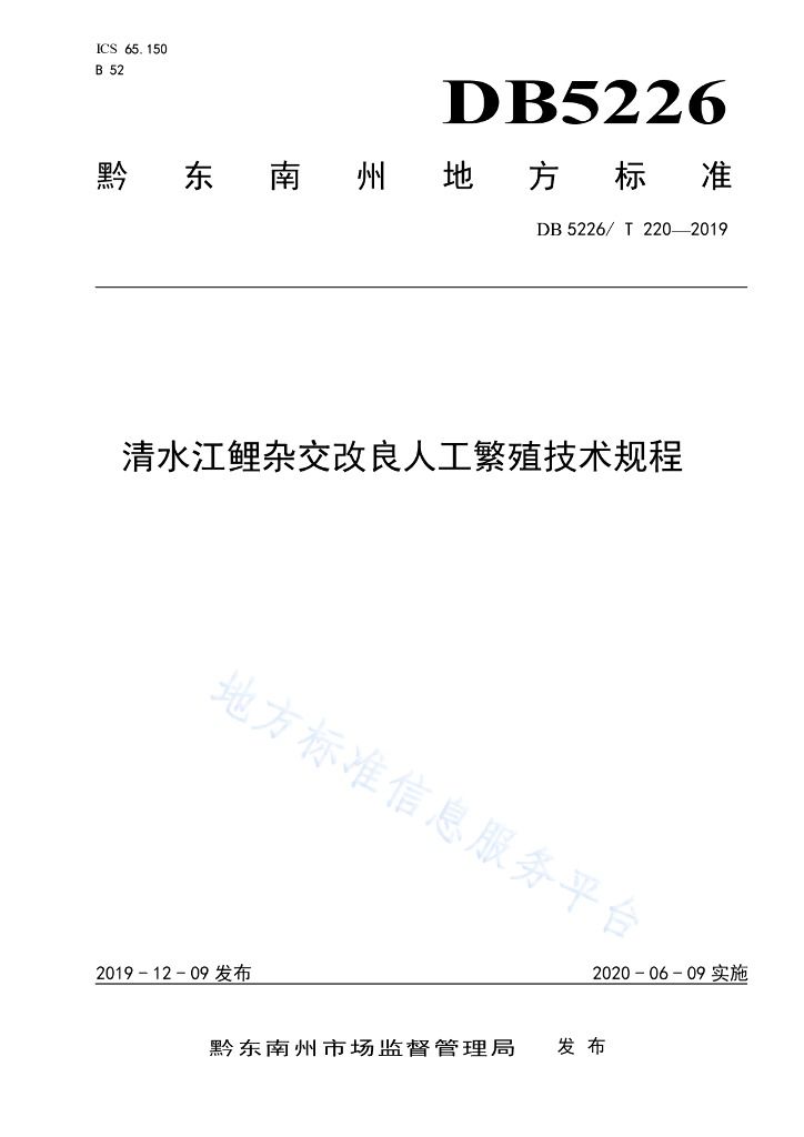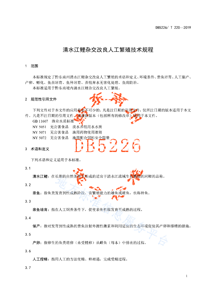 DB5226/T 220-2019 清水江鲤杂交改良人工繁殖技术规程