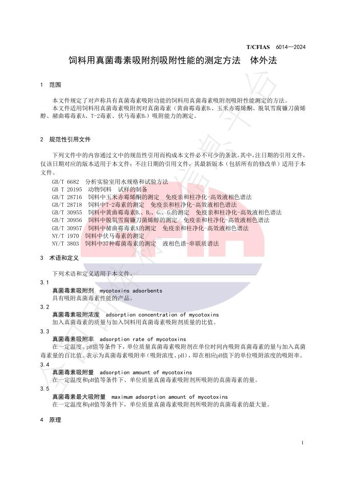 T/CFIAS 6014-2024 饲料用真菌毒素吸附剂吸附性能的测定方法 体外法