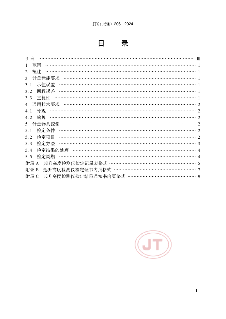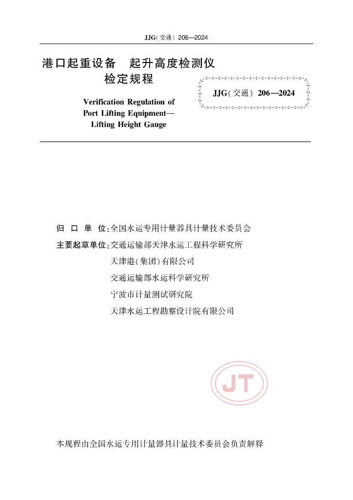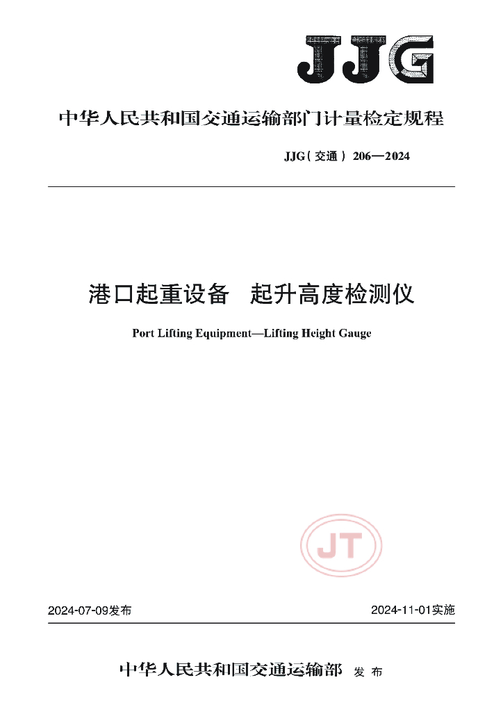 JJG(交通)206-2024 港口起重设备 起升高度检测仪