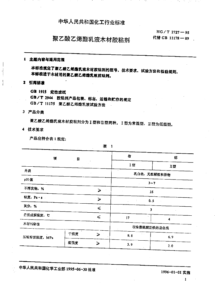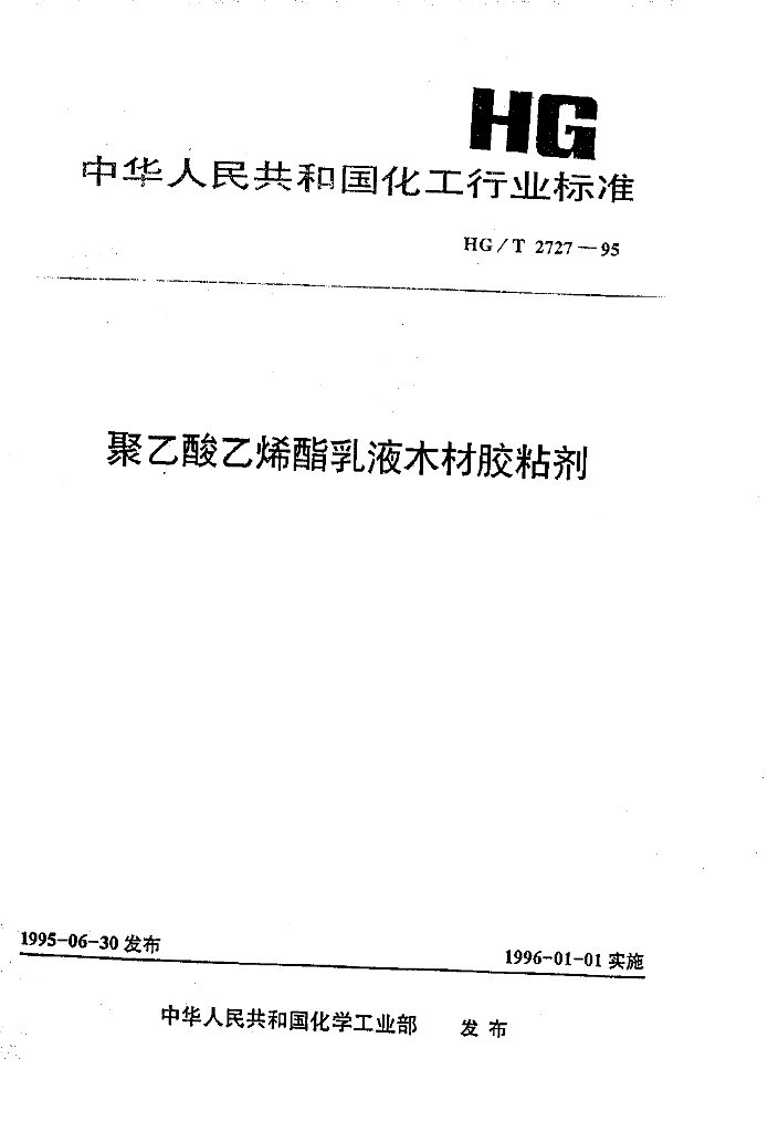 HG/T 2727-1995 聚乙酸乙烯酯乳液木材胶粘剂