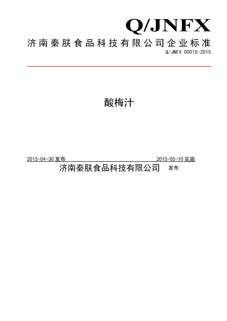 Q/JNFX 0001S-2015 济南秦朕食品科技有限公司 酸梅汁
