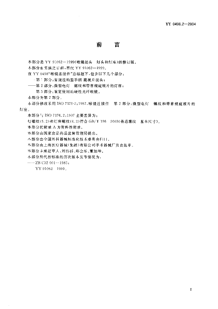 YY 0498.2-2004 喉镜连接件 第2部分:微型电灯螺纹和带常规窥视片的灯座