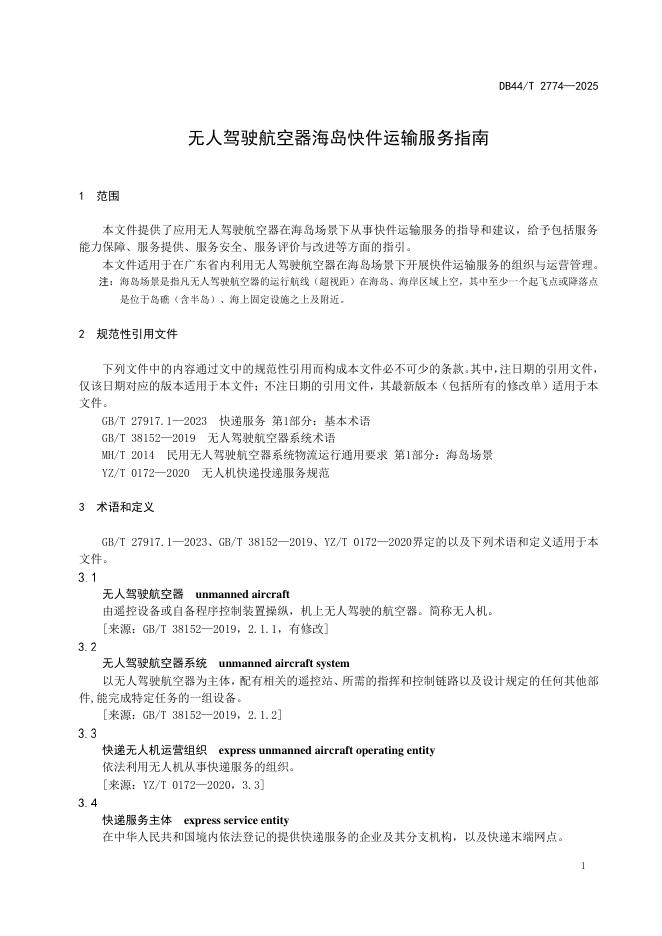 DB44/T 2774-2025 无人驾驶航空器海岛快件运输服务指南