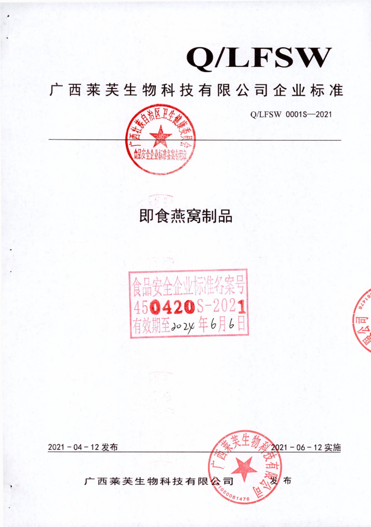 Q/LFSW 0001S-2021 即食燕窝制品