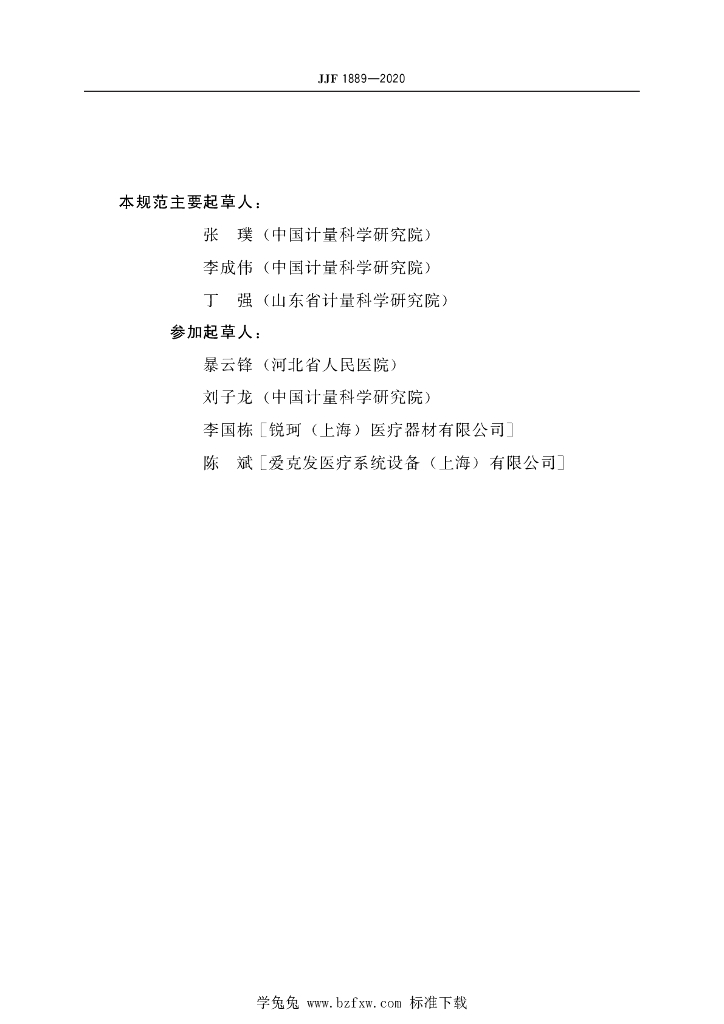 张璞(中国计量科学研究院)、李成伟(中国计量科学研究院)、丁强(山东省计量科学研究院)、暴云锋(河北省人民医院)、刘子龙(中国计量科学研究院)、李国栋(锐珂(上海)医疗器材有限公司)、陈斌(爱克发医疗系统设备(上海)有限公司)