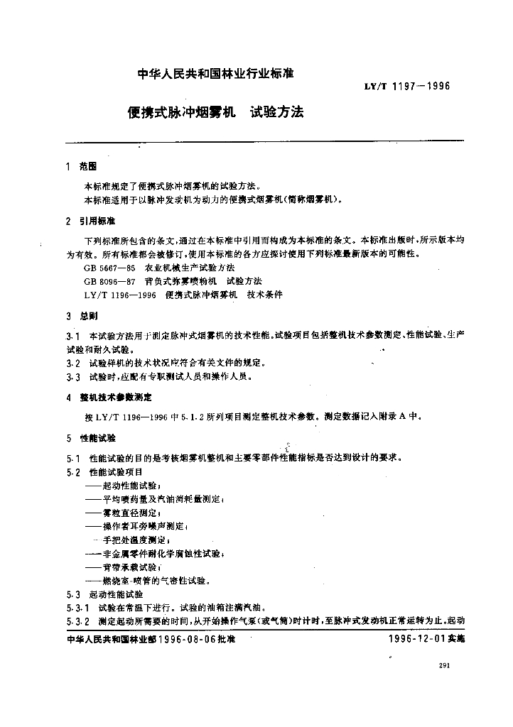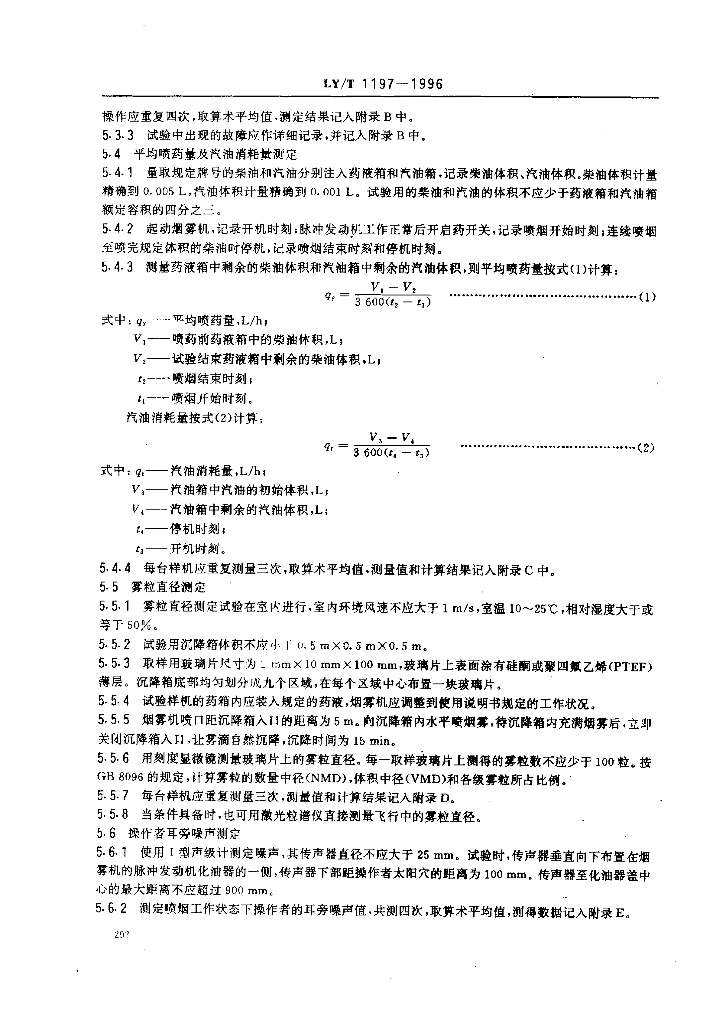 LY/T 1197-1996 便携式脉冲烟雾机 试验方法