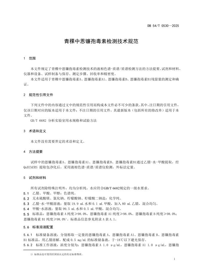 DB54/T 0530-2025 青稞中恩镰孢毒素检测技术规范