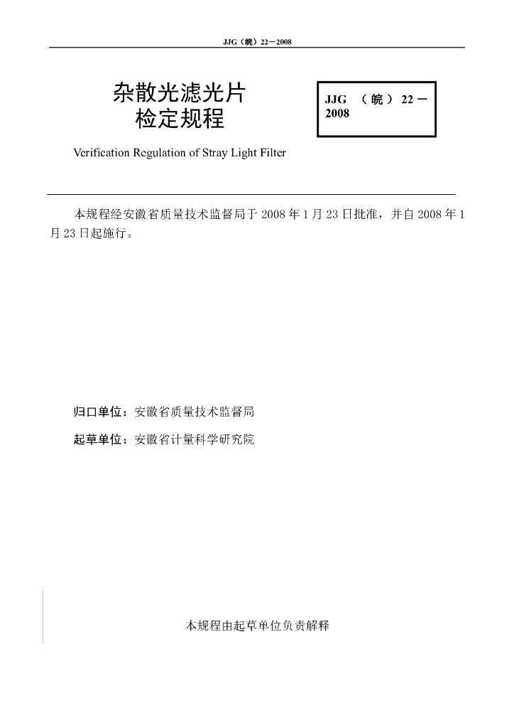 JJG(皖)22-2008 杂散光滤光片
