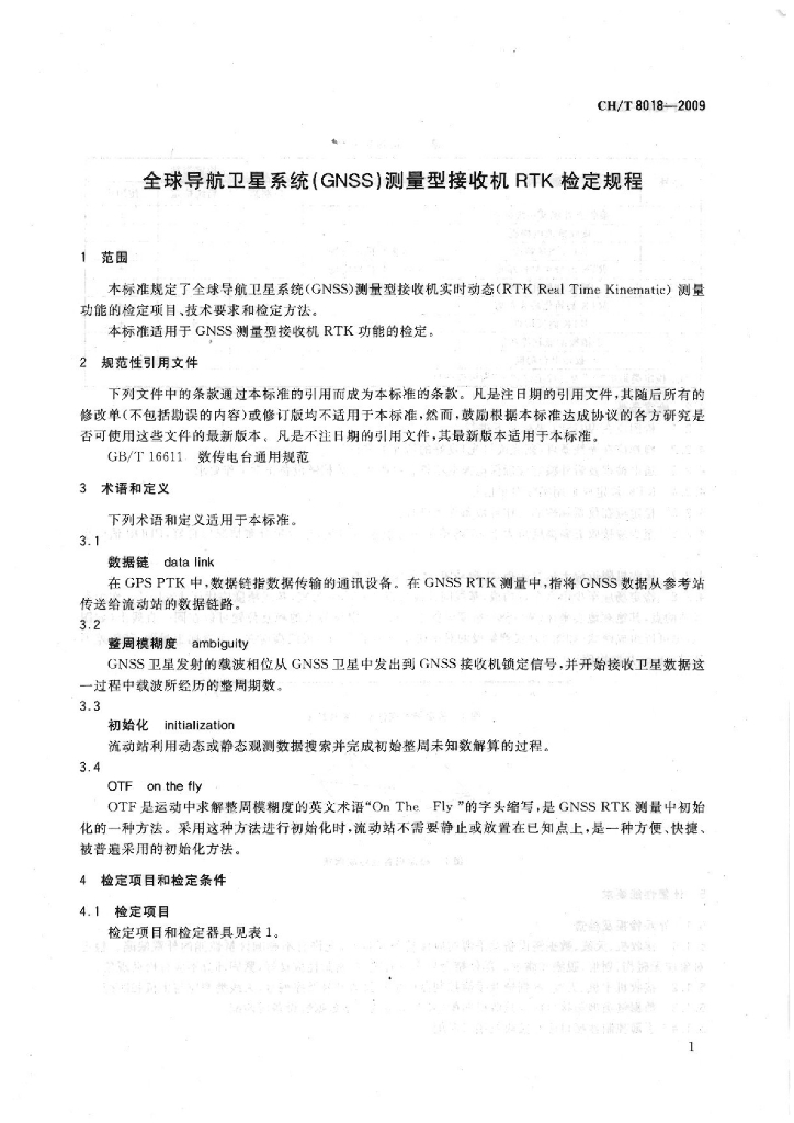 CH/T 8018-2009 全球导航卫星系统(GNSS)测量型接收机RTK检定规程