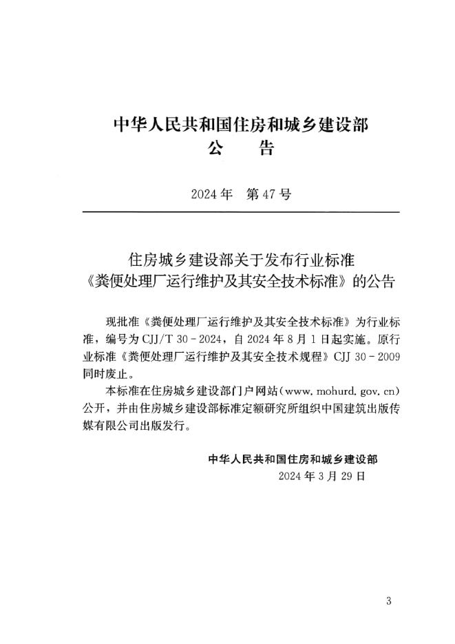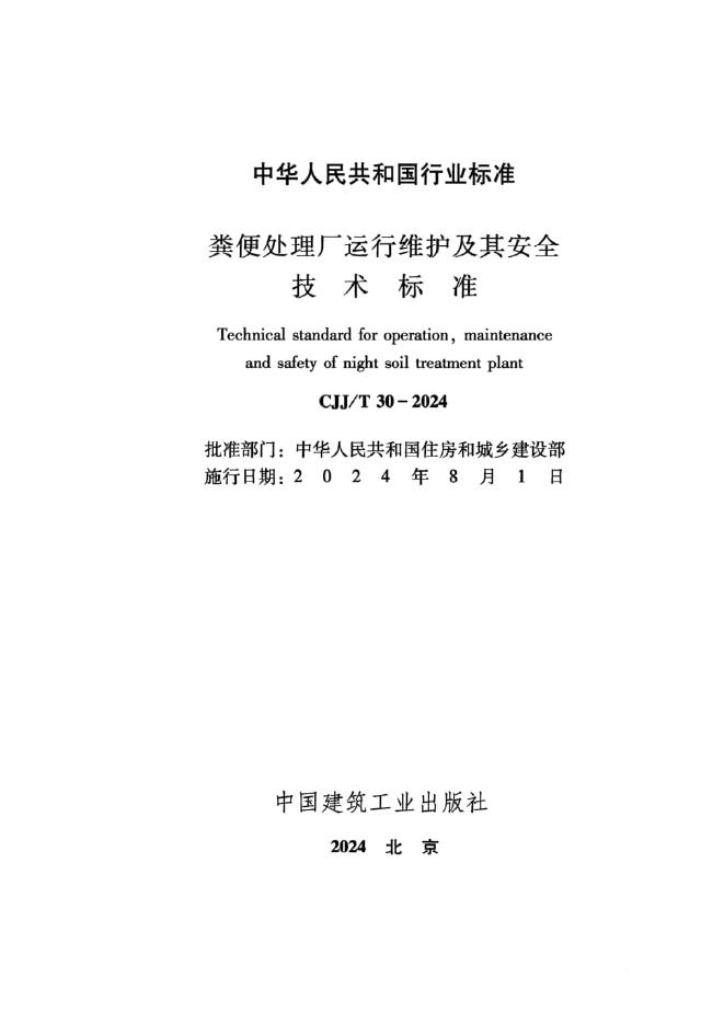 CJJ/T 30-2024 粪便处理厂运行维护及其安全技术标准(附条文说明)