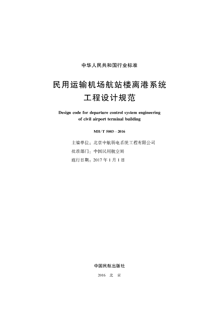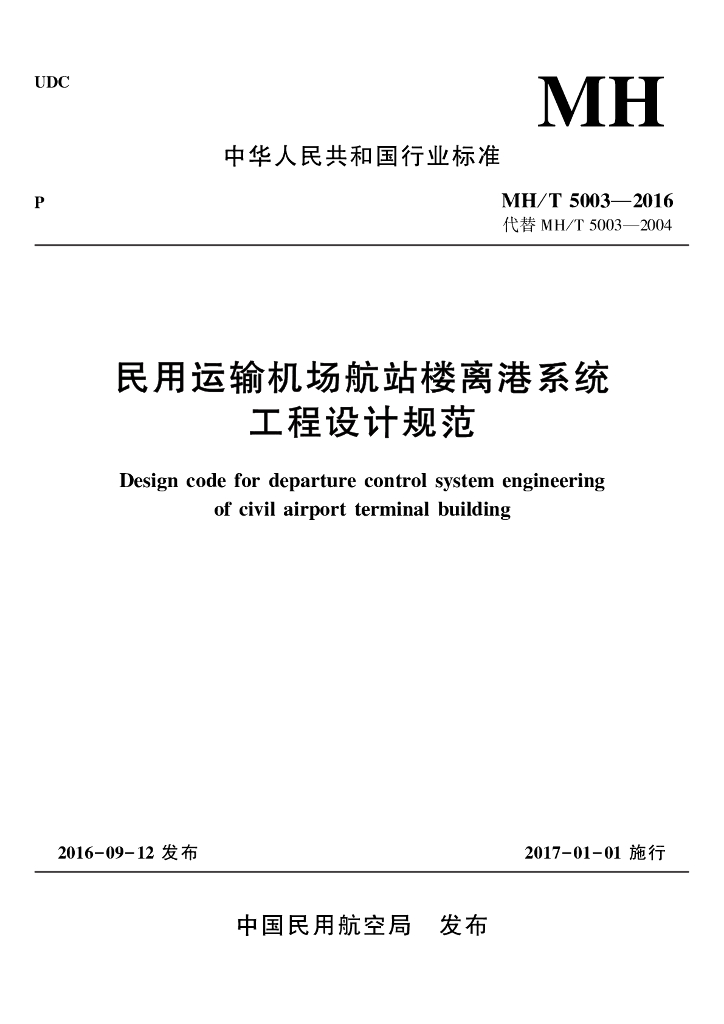 MH/T 5003-2016 民用运输机场航站楼离港系统工程设计规范