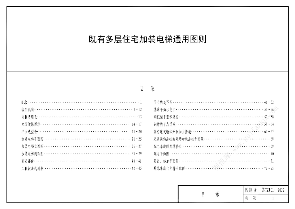 苏TZJ01-2022 既有多层住宅加装电梯通用图则图集