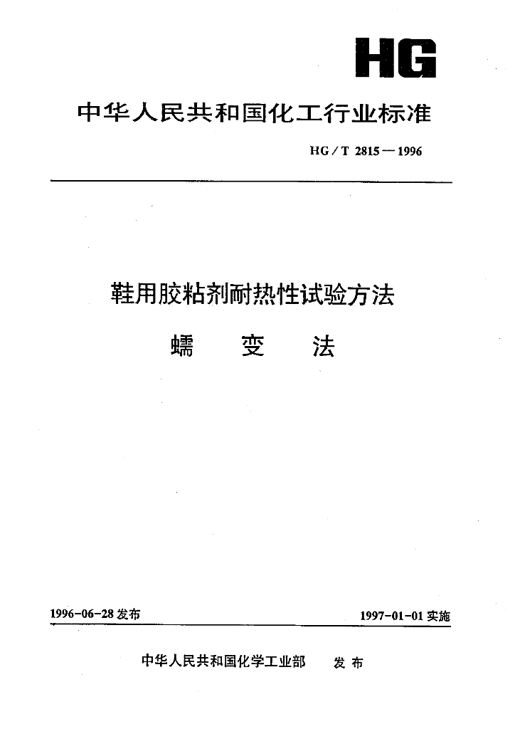 HG/T 2815-1996 鞋用胶粘剂耐热性试验方法 蠕变法