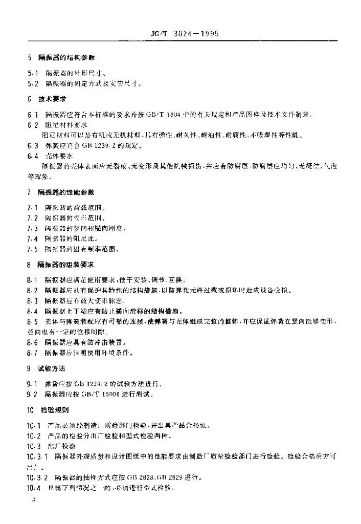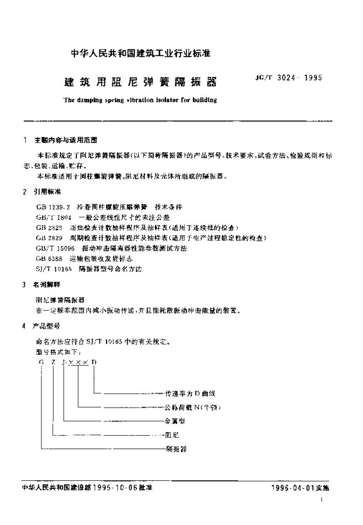 JG/T 3024-1995 建筑用阻尼弹簧隔振器