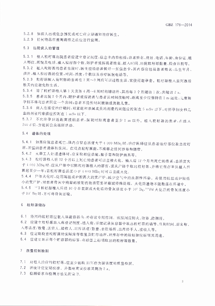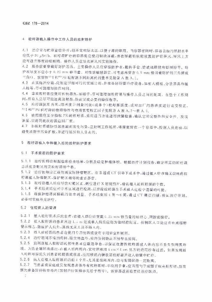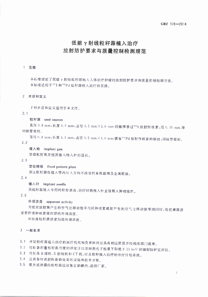 GBZ 178-2014 低能γ射线粒子源植入治疗的放射卫生防护与质量控制检测规范