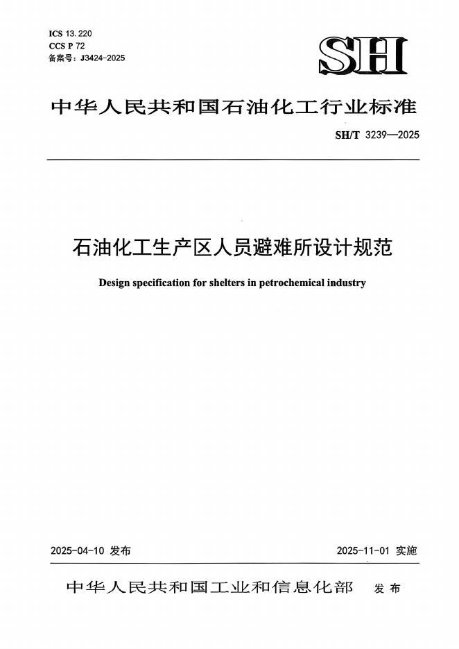 SH/T 3239-2025 石油化工生产区人员避难所设计规范