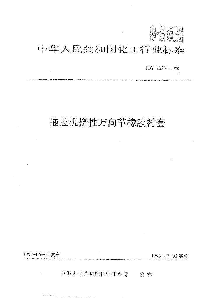 HG/T 2329-1992 拖拉机挠性万向节橡胶衬套