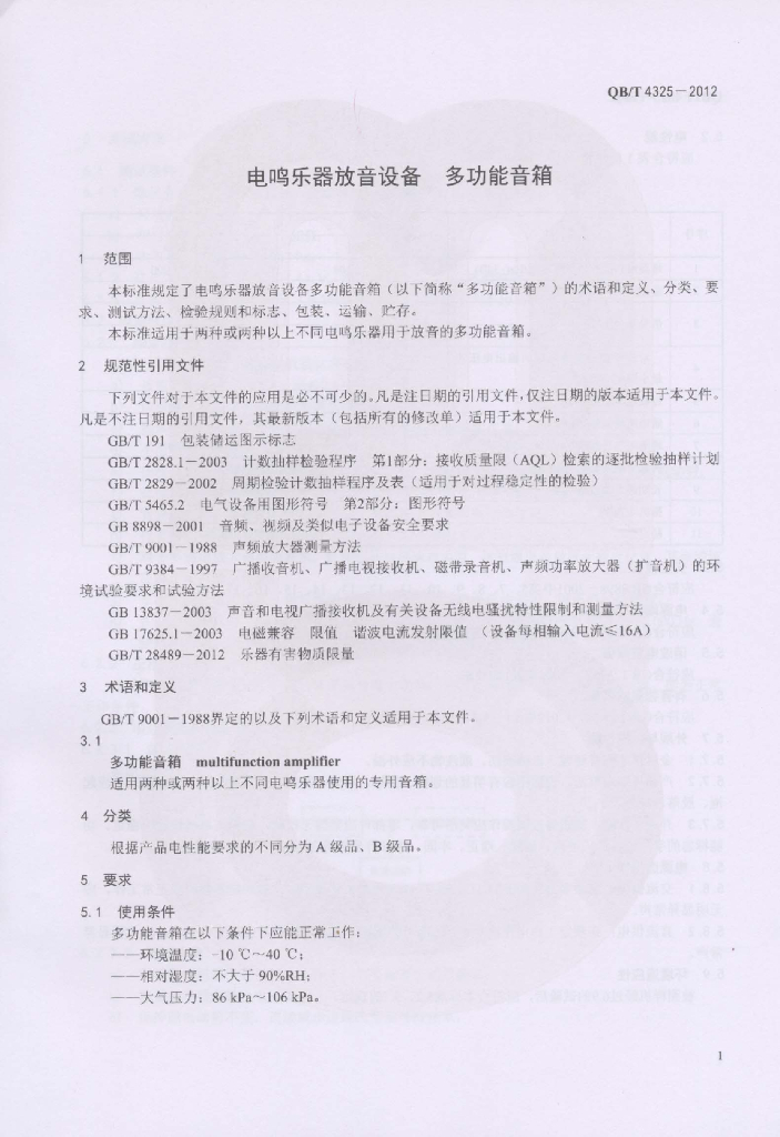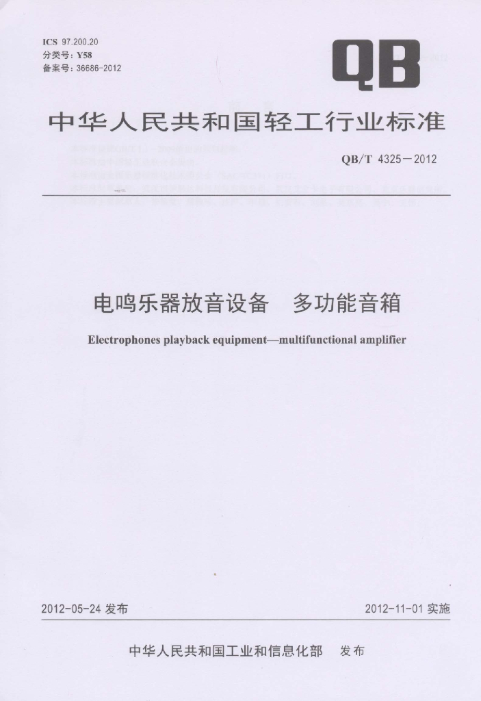 QB/T 4325-2012 电鸣乐器放音设备多功能音箱