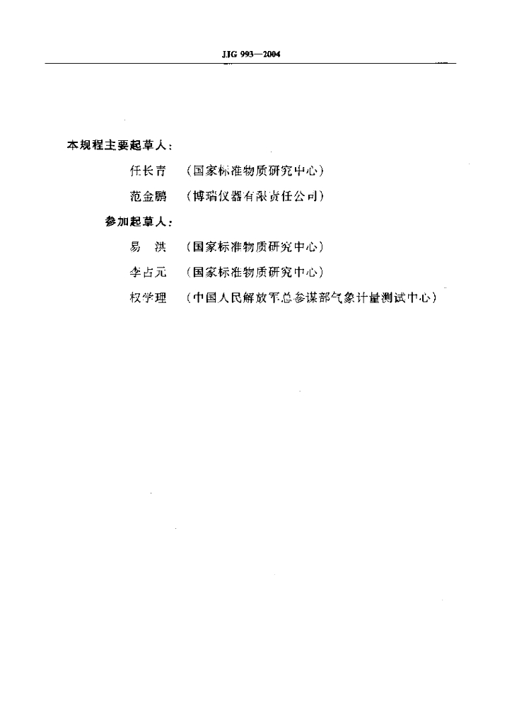 任长青(国家标准物质研究中心)、范金鹏(博瑞仪器有限责任公司)、易洪(国家标准物质研究中心)、李占元(国家标准物质研究中心)、权学理(中国人民解放军总参谋部气象计量测试中心)