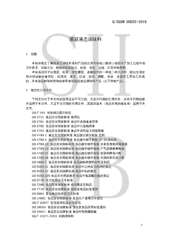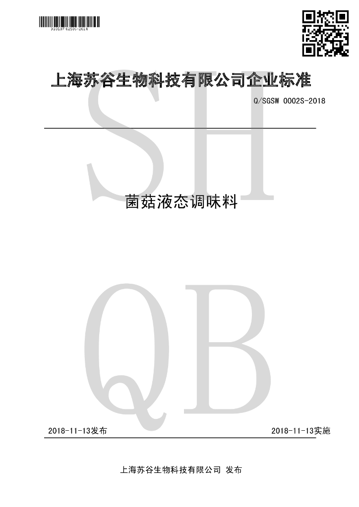 Q/SGSW 0002S-2018 菌菇液态调味料