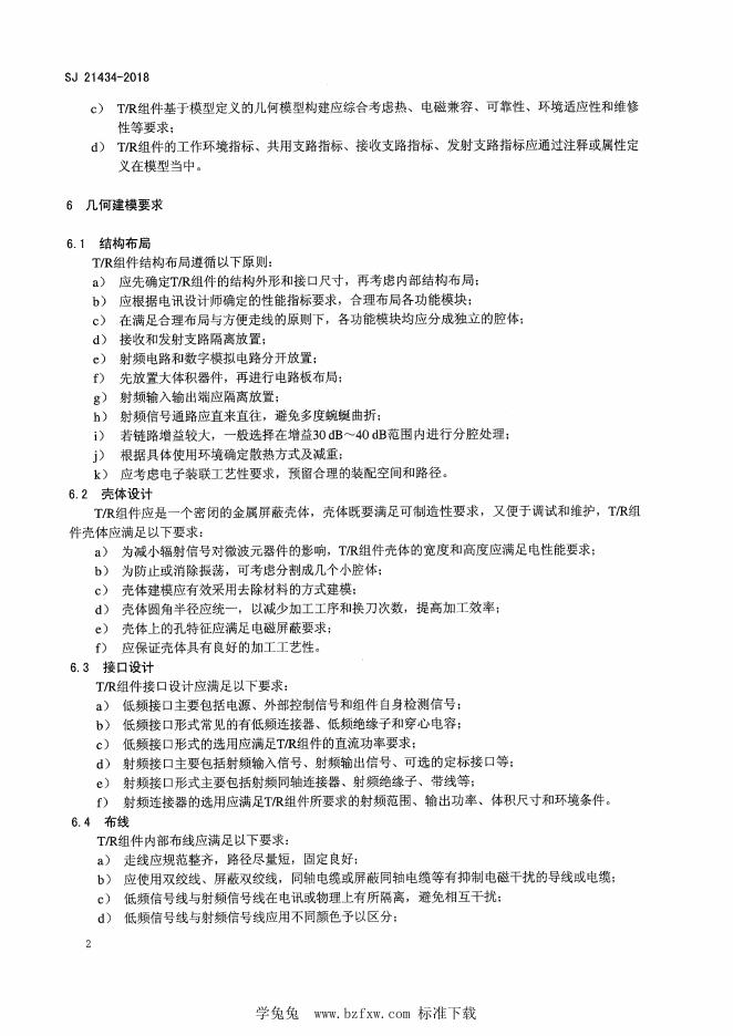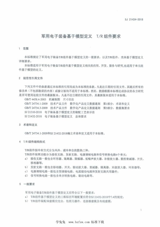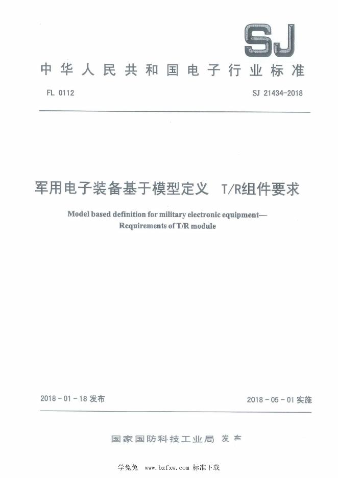 SJ 21434-2018 军用电子装备基于模型定义 T/R组件要求